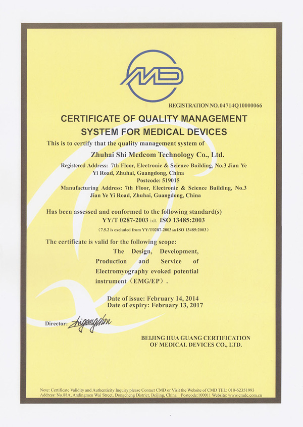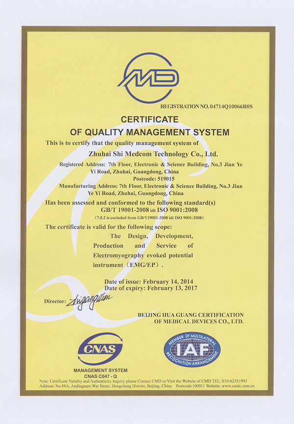 此两项质量管理体系认证的通过,进一步证明了迈康科技在肌电图/诱发电位仪的设计、开发、生产和服务上的高质量水平,为持续向顾客提供质量优异的产品与服务做出了有力的保障。